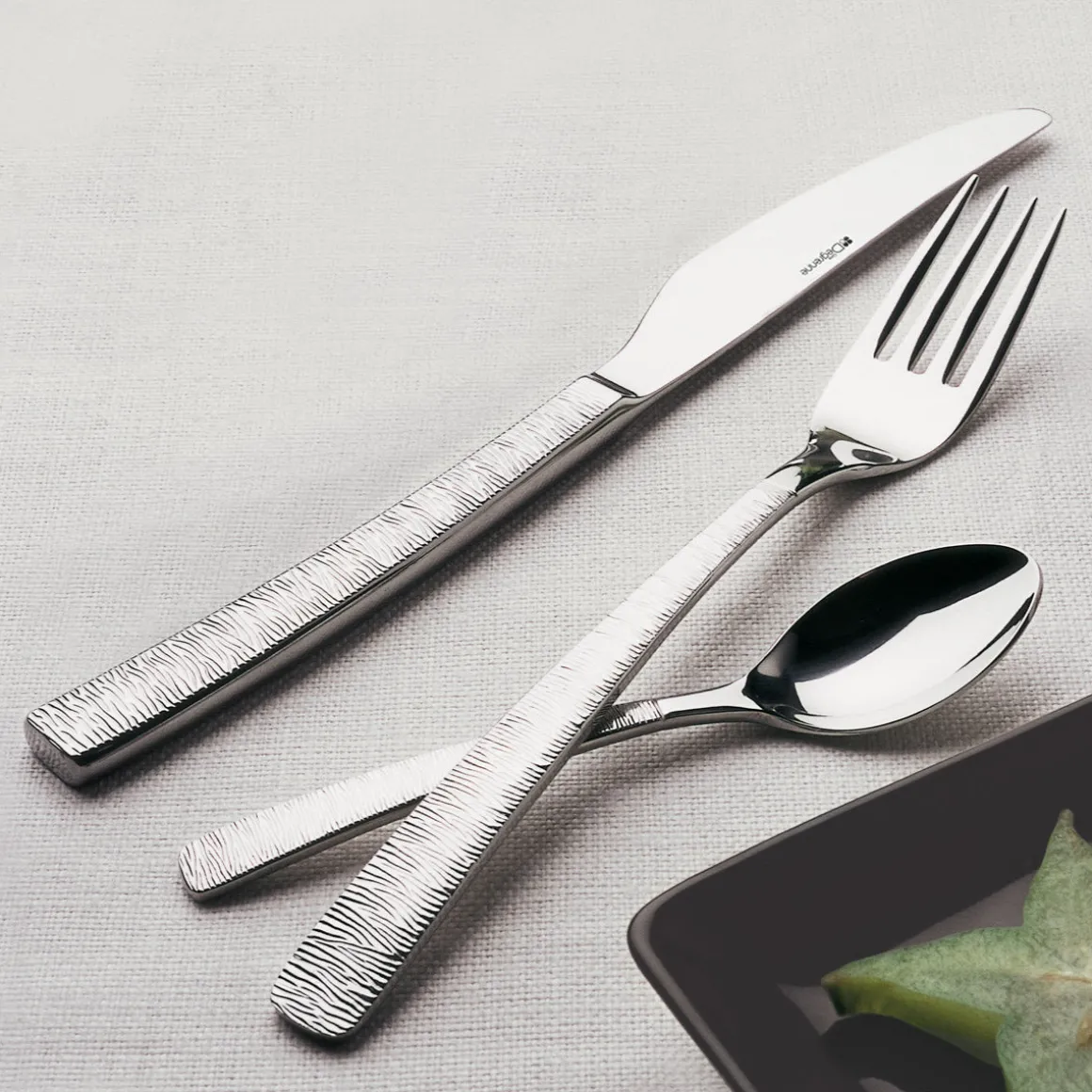 ASTRÉE CISELÉ de DEGRENNE est une collection de couverts de forme élancée, au manche ciselé d’un décor , sur lequel la lumière vient jouer pour habiller les tables avec originalité et raffinement. Fabriqués en acier inoxydable 18-10, de haute qualité et résistance, ils sont faciles d’entretien.