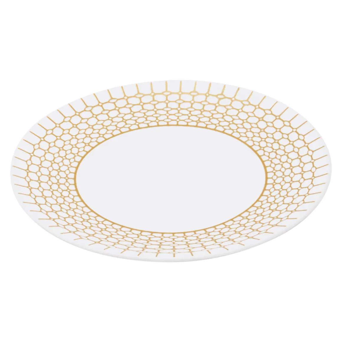 La Maison DEGRENNE dévoile COURONNE, une collection où l’élégance se conjugue à la fonctionnalité. Cette collection de porcelaine blanche se distingue par son motif en relief doré, réalisé grâce à un savoir-faire unique de la Maison. Cette assiette de forme coupe est décorée d’un motif inspiré à la fois par les univers de l’architecture et de la joaillerie, qui vient dessiner une aile dans le bassin. Cuit à très haute température, ce décor assure une grande résistance. COURONNE est une collection raffinée, proposée dans une diversité de formats : des formes coupes classiques ou contemporaines et un grand plat ovale.