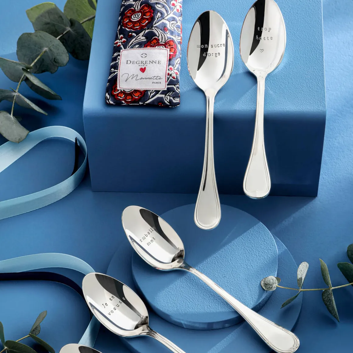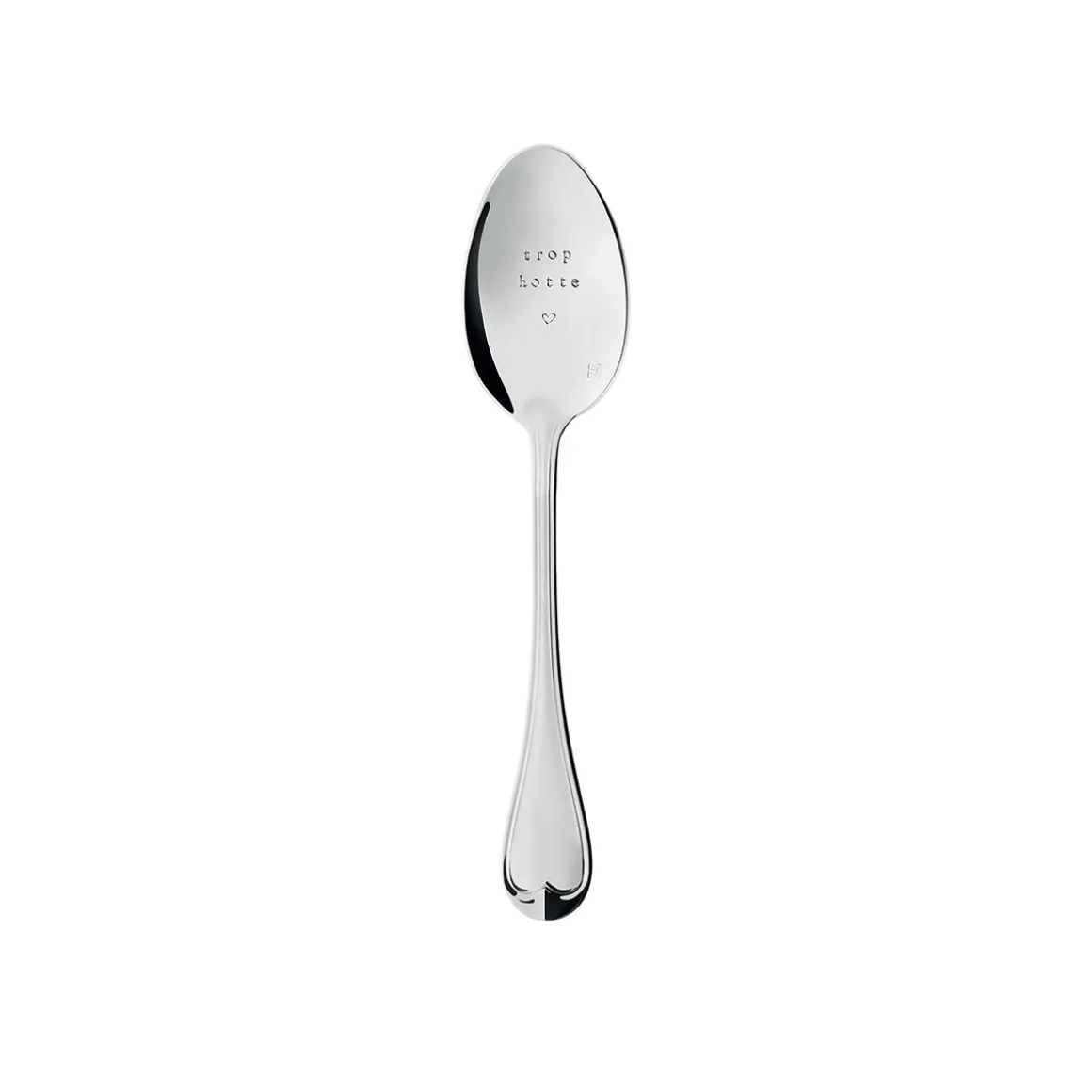 Les deux marques s’associent une nouvelle fois, le temps d’une collection capsule, dans une démarche d’upcycling et font revivre des cuillères à dessert en métal argenté, sur des modèles emblématiques de la Maison DEGRENNE. Cette collaboration s’inscrit pleinement dans l’idée d’un Art de Vivre où l’on partage chaque instant avec les êtres qui nous sont chers. Les cuillères, chinées dans les archives de la Maison DEGRENNE, ont été gravées une à une à la main, dans les ateliers MONNETTE Paris. Les gravures, réalisées au poinçon, révèlent le message décalé : « Trop hotte ».