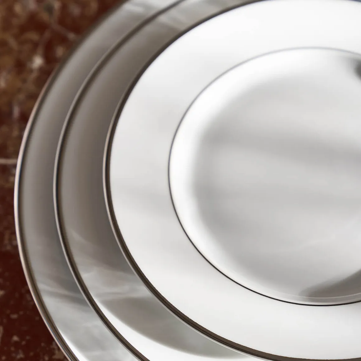 La collection GALON PLATINE décorée d’un filet en platine posée à la main allie élégance et sobriété, dans la plus pure tradition des porcelainiers de Limoges. La Haute Porcelaine de Limoges est une céramique d’exception dont le prestige et la renommée sont devenus universels. GALON PLATINE vient alors révéler la minutie du talent et du savoir-faire des artisans de la maison DEGRENNE. La collection trouvera facilement sa place sur toutes les tables, les rendant élégantes et classiques. Elle est une valeur sure pour dresser des tables harmonieuses et intemporelles.