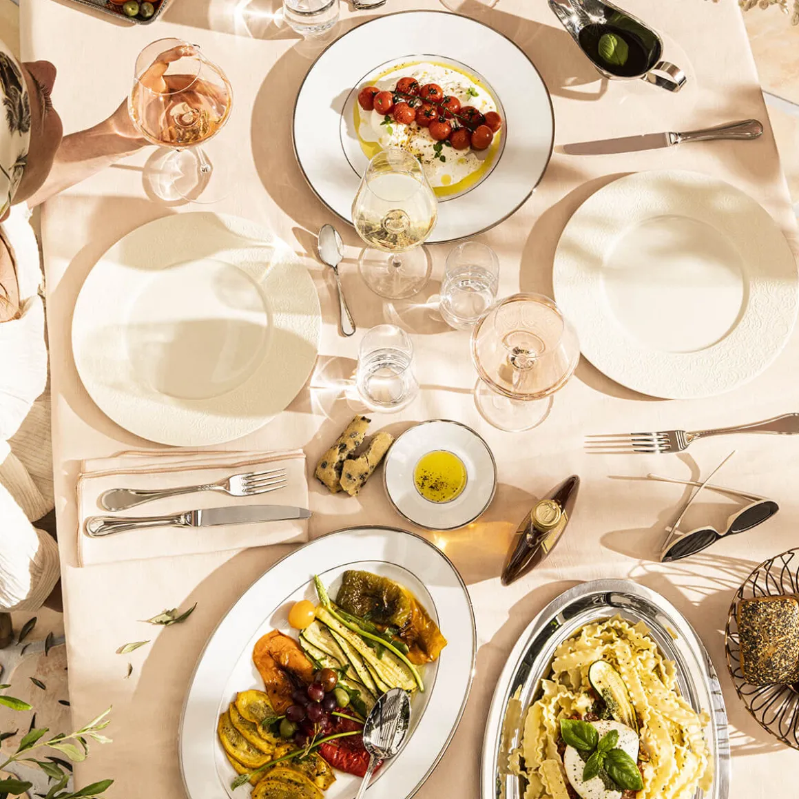 La collection GALON PLATINE décorée d’un filet en platine posée à la main allie élégance et sobriété, dans la plus pure tradition des porcelainiers de Limoges. La Haute Porcelaine de Limoges est une céramique d’exception dont le prestige et la renommée sont devenus universels. GALON PLATINE vient alors révéler la minutie du talent et du savoir-faire des artisans de la maison DEGRENNE. La collection trouvera facilement sa place sur toutes les tables, les rendant élégantes et classiques. Elle est une valeur sure pour dresser des tables harmonieuses et intemporelles.