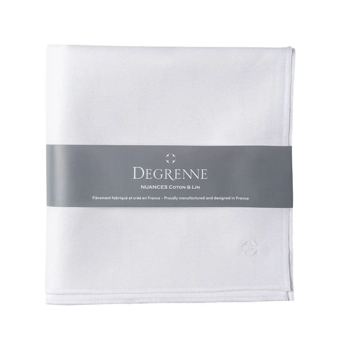 La Collection de linge de table NUANCES Coton & Lin de DEGRENNE associe un design contemporain à une production française de grande qualité, réalisée dans les Vosges avec des savoir-faire innovants. NUANCES est une collection en 50% coton – 50% lin, revêtue d’un traitement anti-tâche déperlant (pour les nappes) avec un toucher doux. Ses finitions, la broderie du Trèfle DEGRENNE et le point de bourdon surjet, lui apportent du contraste et de l’identité. Déclinée en de nombreuses teintes, intemporelles ou plus colorées, cette collection se marie avec de nombreux styles pour égayer vos tables et votre quotidien.