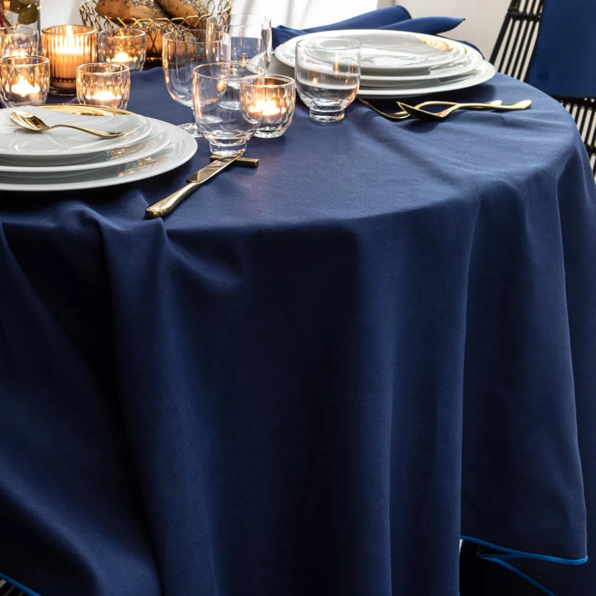 NUANCES COTON & LIN BLEU NUIT Nappe carrée 180 x 180 cm