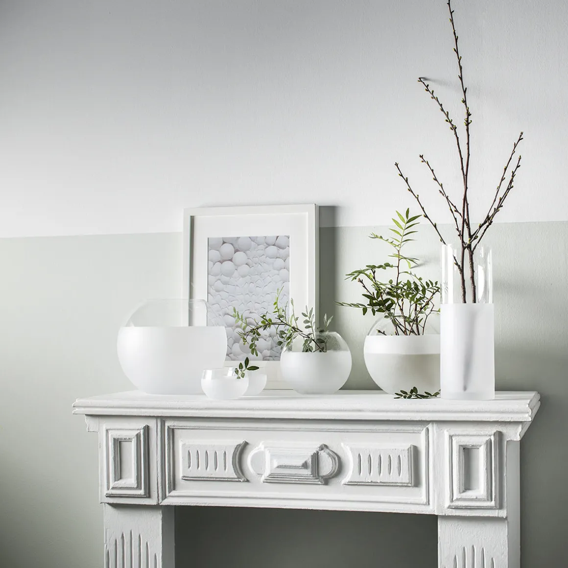 Délicatesse et légèreté caractérisent la collection de vases BALTIQUE en verre subtilement givré. Ses formes pures rondes ou droites donnent élégance aux intérieurs pour sublimer bouquets et compositions. Mélangez formes et tailles pour plus de style et d’originalité. Le verre givré est très facile d’entretien et peut être mis au lave vaisselle.