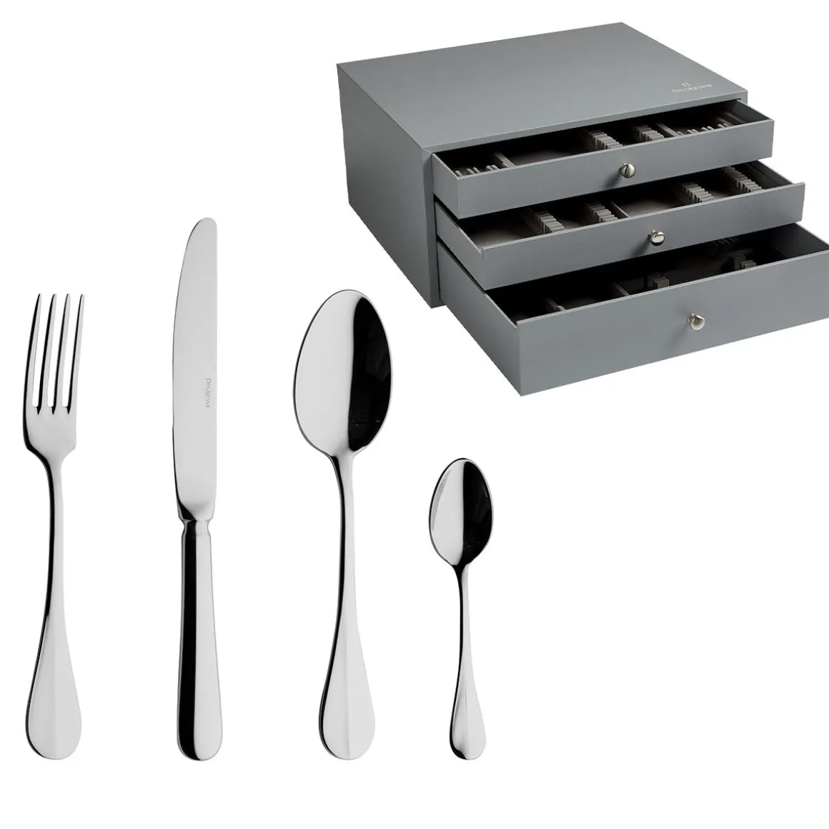 La collection de couverts BLOIS de DEGRENNE est une référence classique et intemporelle, dans la tradition des couverts , qui reflète une élégance discrète et perpétue la tradition des arts de la table à la française. Réalisés en acier inoxydable 18-10, de haute qualité et résistance, ils sont faciles d’entretien.