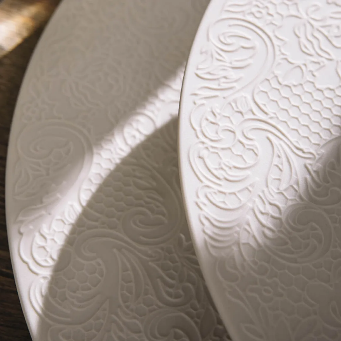 Avec la collection L COUTURE, DEGRENNE provoque une rencontre inédite entre la Haute Porcelaine de Limoges et un motif dentelle, inspiré de la Haute Couture. La Haute Porcelaine de Limoges est une céramique d’exception dont le prestige et la renommée sont devenus universels. L COUTURE se distingue par la précision et la légèreté de ses lignes, témoignage de l’excellence des artisans de la Maison DEGRENNE. La fabrication de chaque pièce de cette collection d’exception nécessite plus d’une semaine de travail artisanal. L’art du beau grâce à l’exécution irréprochable de ce dessin digne des plus grands dentelliers.