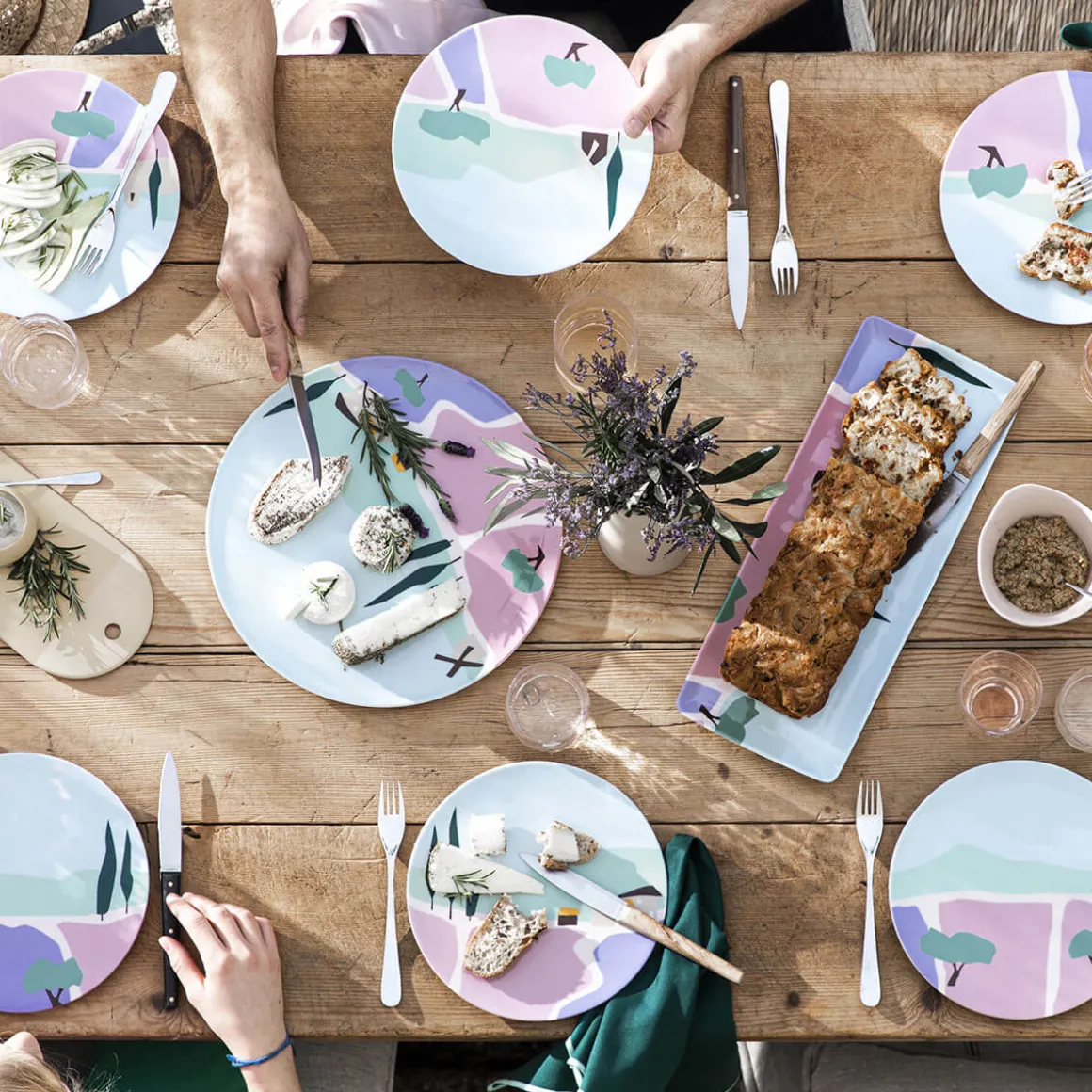 La Maison DEGRENNE crée une collection de vaisselle inspirée par les plus beaux paysages français et des moments de vie. Pour sa troisième destination, DEGRENNE s’inspire de l’arrière-pays provençal. La collection de vaisselle DESTINATION SUD réunit des décors vallonnés et fleuris aux tons printaniers caractéristiques de la douceur de vivre de la région. Le décor façon papier découpé apporte légèreté et modernité à ces paysages au charme unique. La collection de vaisselle DESTINATION SUD se décline sur plusieurs formats pour des instants de partage salés ou sucrés.