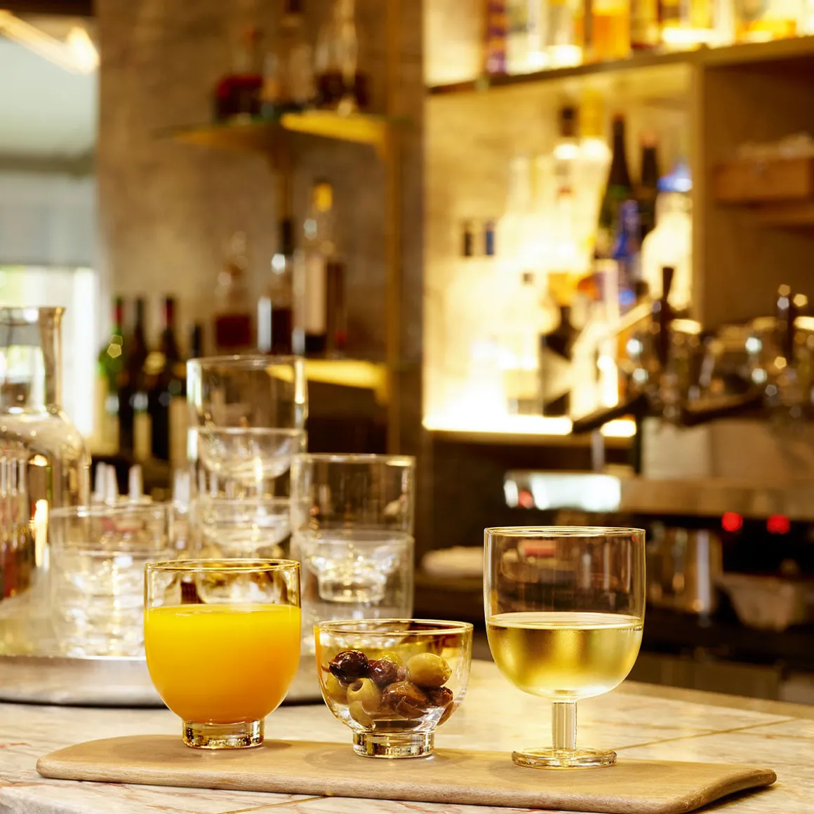 EMPILEO est une collection résolument moderne et pratique. Les verres sont conçus pour être empilables, y compris le verre à pied qui s’empile également avec le gobelet. Gain de place garanti ! Son originalité réside aussi dans son design sobre et tout en finesse pensé par DEGRENNE. Composée d’un petit verre à pied, d’un gobelet et d’un verre à tapas, EMPILEO TRANSPARENT est également complétée par une carafe. Les verres sont produits en cristallin soufflé bouche, il est possible d’observer de légères variations dimensionnelles. La gamme est disponible en plusieurs coloris.