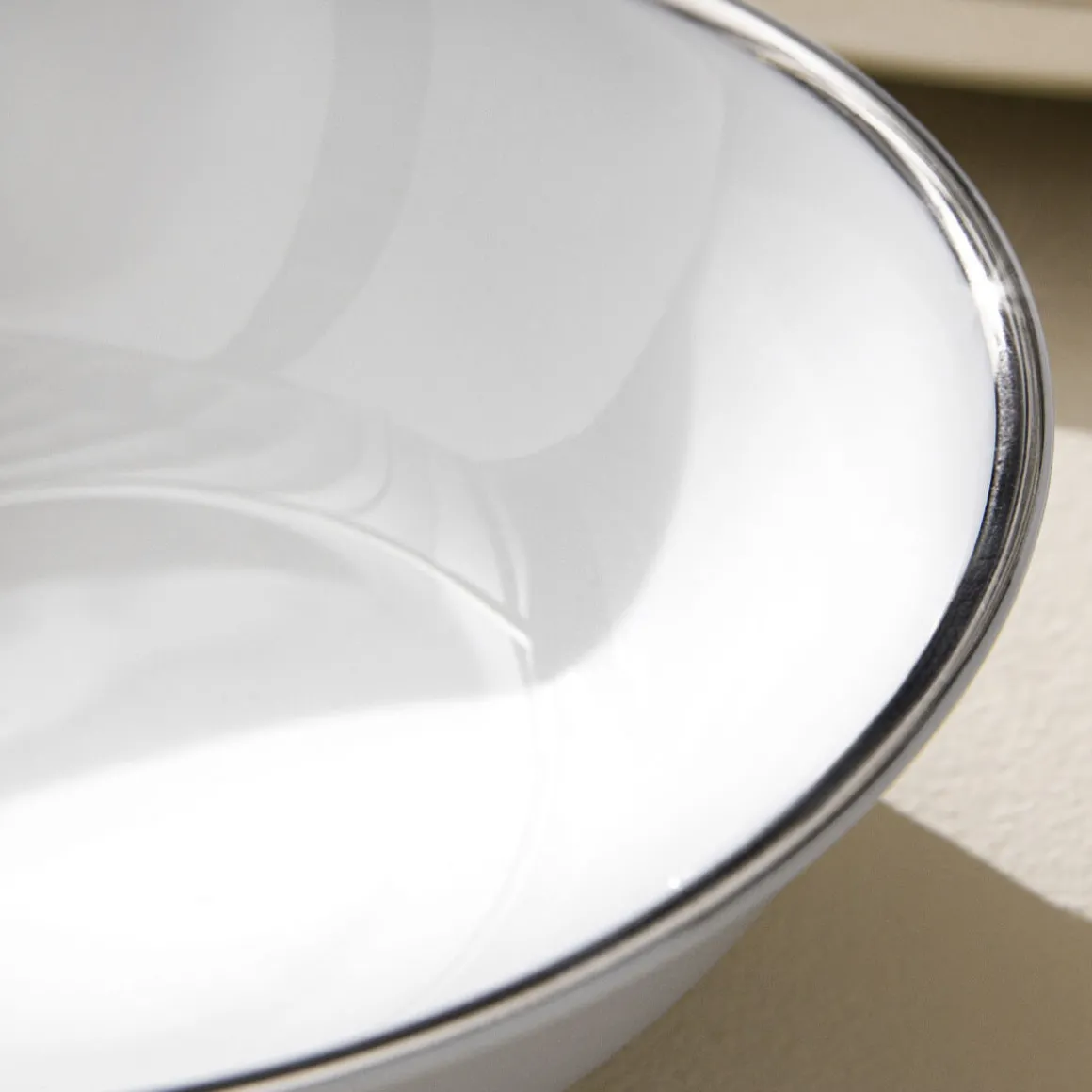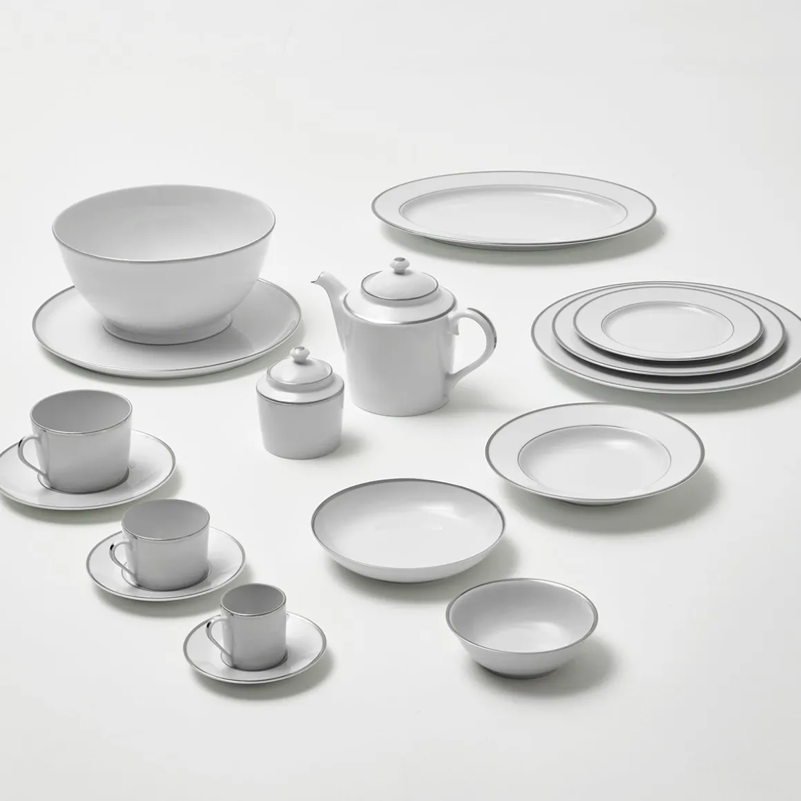 La collection GALON PLATINE décorée d’un filet en platine posée à la main allie élégance et sobriété, dans la plus pure tradition des porcelainiers de Limoges. La Haute Porcelaine de Limoges est une céramique d’exception dont le prestige et la renommée sont devenus universels. GALON PLATINE vient alors révéler la minutie du talent et du savoir-faire des artisans de la maison DEGRENNE. La collection trouvera facilement sa place sur toutes les tables, les rendant élégantes et classiques. Elle est une valeur sure pour dresser des tables harmonieuses et intemporelles.