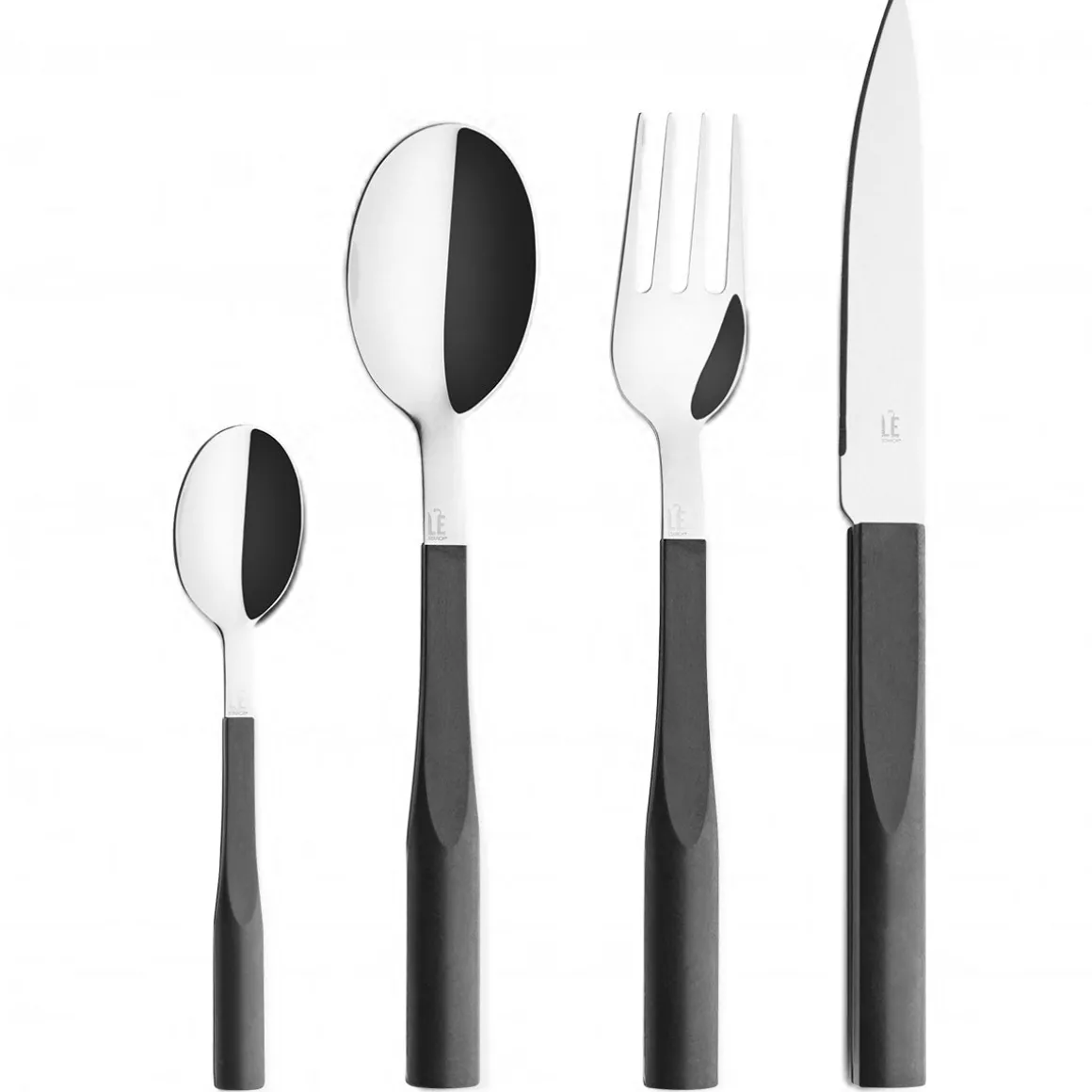 La collection de couvert L’E signe la collaboration entre la maison DEGRENNE et le créateur PHILIPPE STARCK. Adaptées aux nouvelles tendances de consommation, les fourchettes sont dessinées dans une forme creusée pour savourer sauces, quinoa et autres céréales. Les couverts L’E TRUFFE NOIR sont réalisés dans un acier inoxydable 18-10 et le manche est fabriqué dans un matériau composite chargé de fibres naturelles. Ils apporteront une véritable touche Design et Ecologique à vos tables. Le coffret 24 pièces L’E TRUFFE NOIRE contient 6 fourchettes de table, 6 couteaux de table, 6 cuillère de table et 6 cuillères à café.