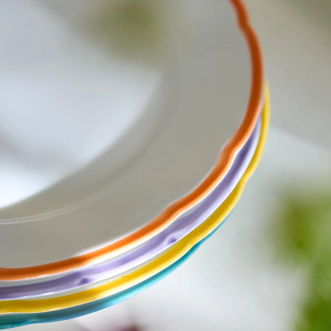 La maison DEGRENNE étend sa gamme REMINISCENCE sur de nouvelles couleurs pop et acidulées : orange, jaune et violet. Issues de formes délicieusement vintage, les assiettes festonnées évoquent des souvenirs de nos cuisines familiales et aussi de nos bistrots français favoris. Fabriquée en porcelaine extra blanche de Limoges, REMINISCENCE se transforme en une collection complètement actuelle grâce à ses galons colorés posés à la main. Les trois nouveaux coloris sont disponibles sur l’assiette de 26cm et sur l’assiette à dessert de 19cm et rejoignent le coloris vert pour une collection mix & match moderne et colorée.